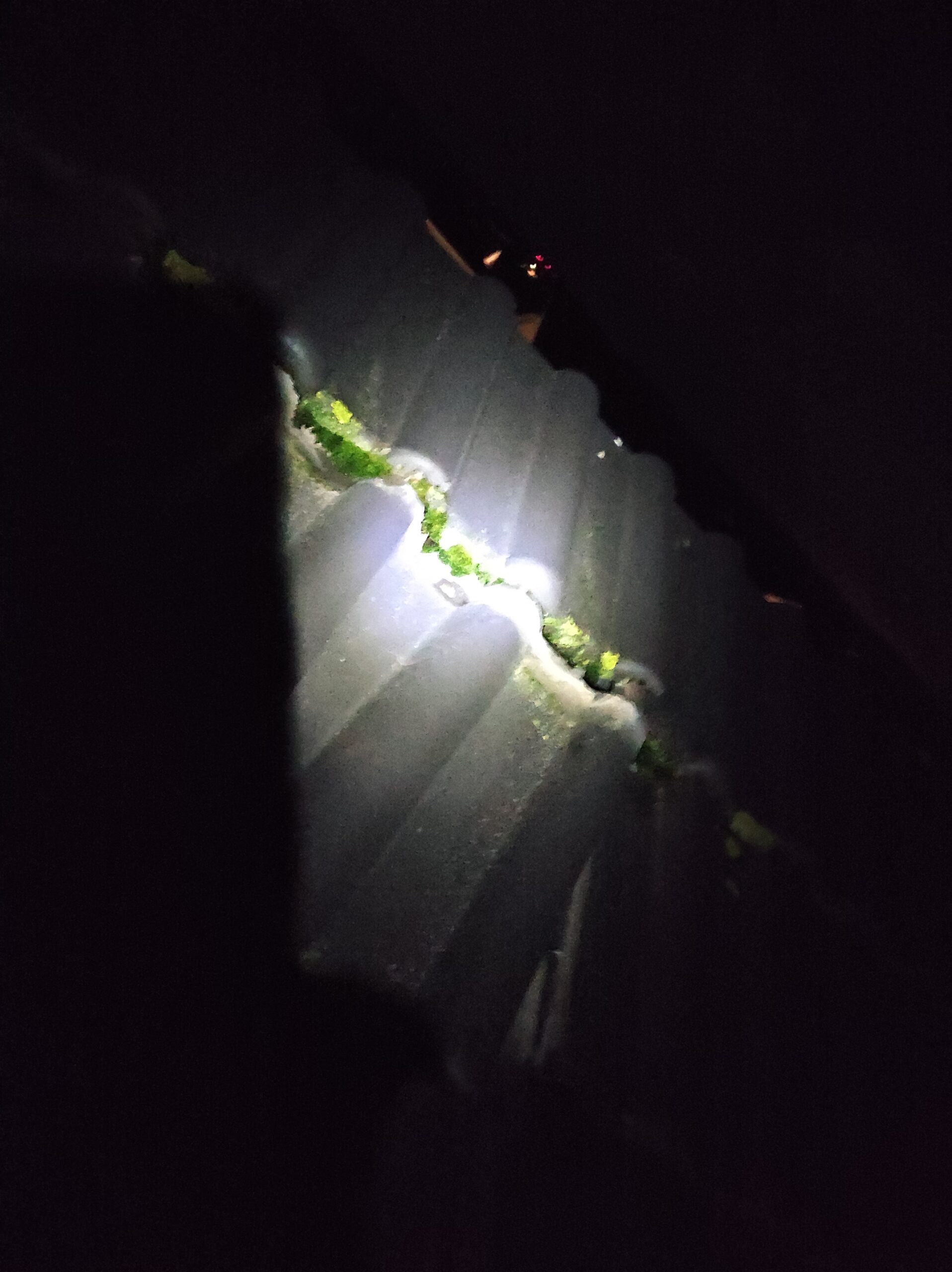 Notdienst im Dunkeln dem Kunden wurden auf der Sogseite seines Daches Fußverklammerte Betondachsteine herausgerissen.Stach Bedachungen